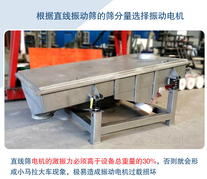 2,根據(jù)直線篩的規(guī)格大小選擇電機(jī)型號(hào)